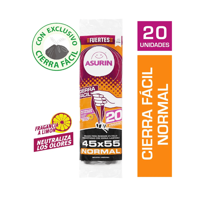 LimpiezaAccesorios de LimpiezaBolsas de ResiduosBolsa de Residuo Asurin 45 x 55 Limon x 20un